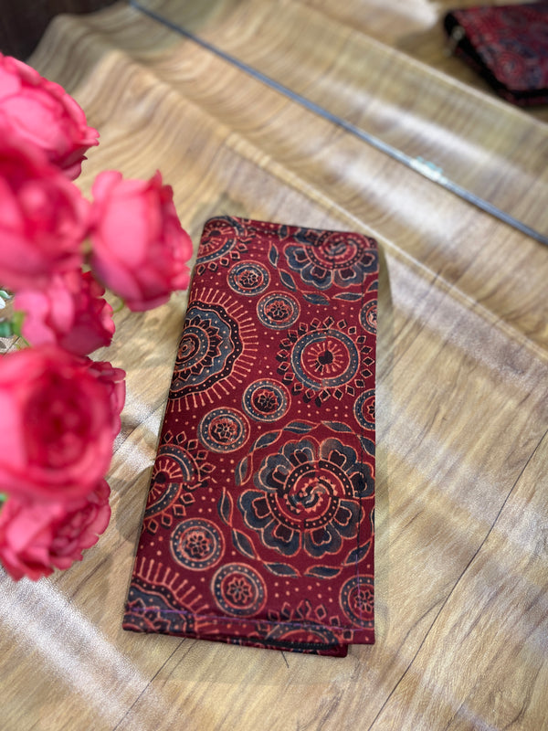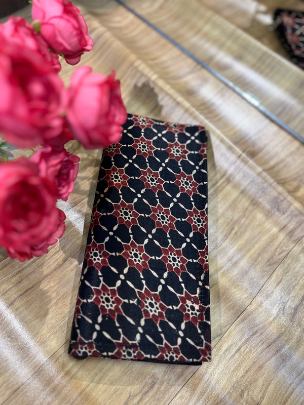 Expertly crafted from luxurious silk, our Ajrakh Model Clutches boast intricate designs inspired by traditional Indian art. With their eye-catching patterns and delicate craftsmanship, these clutches are perfect for elevating any outfit. Plus, the smooth silk material ensures a comfortable and stylish grip. Handmade with precision and care, these clutches are a must-have for any fashion-forward individual.