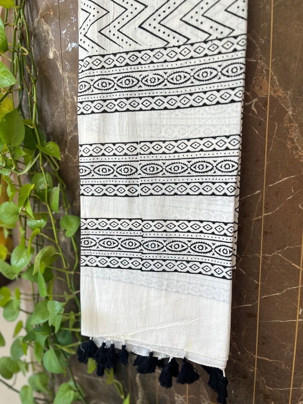 Pure Ajrak cotton Dupatta with tassils