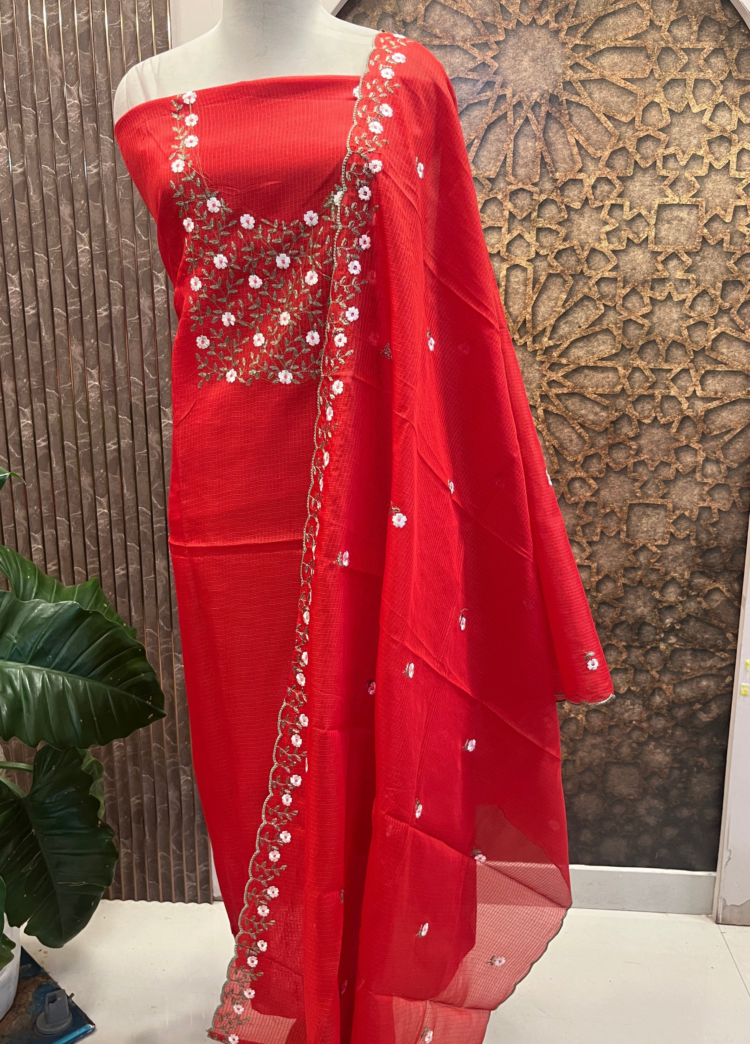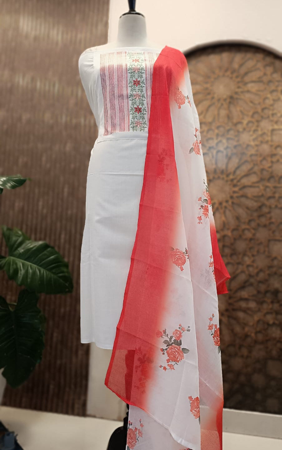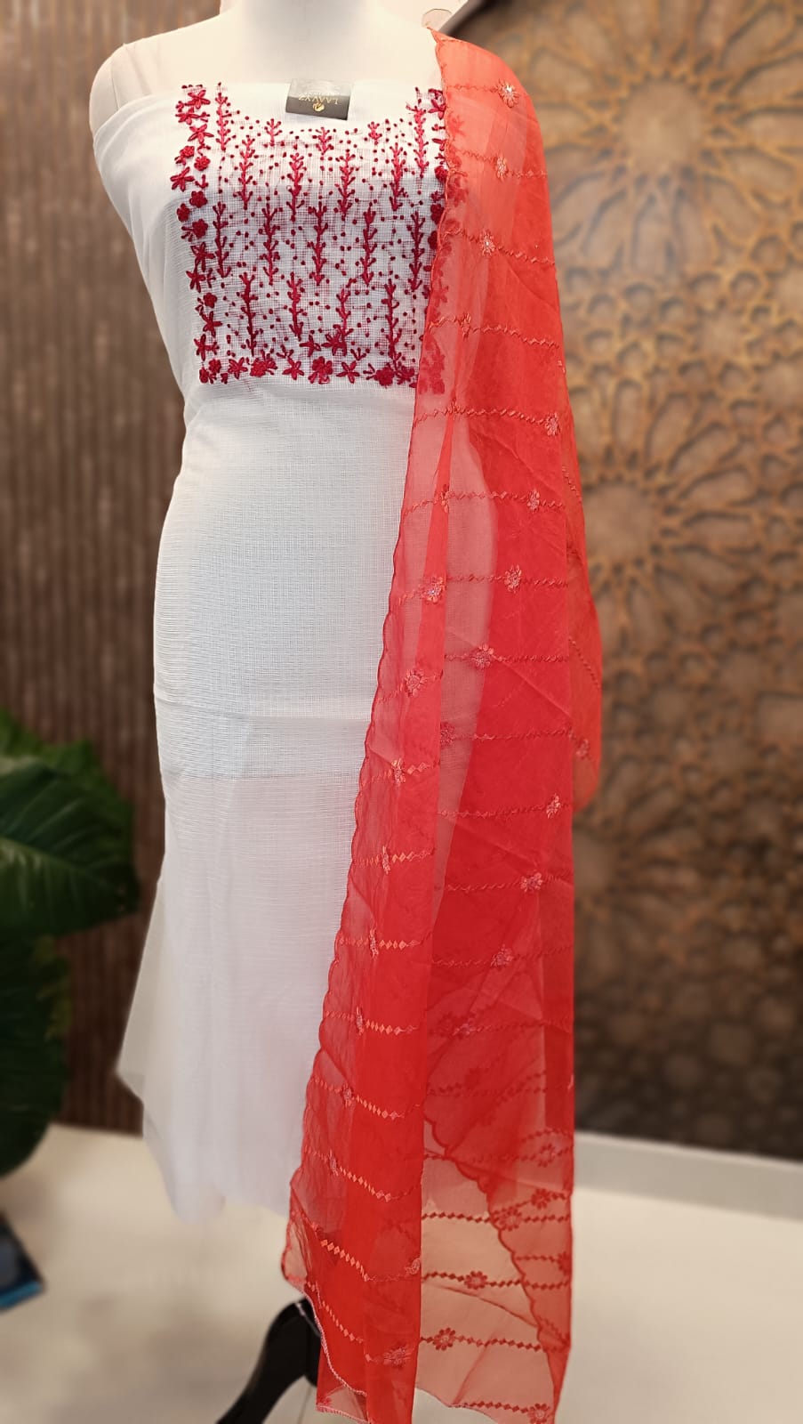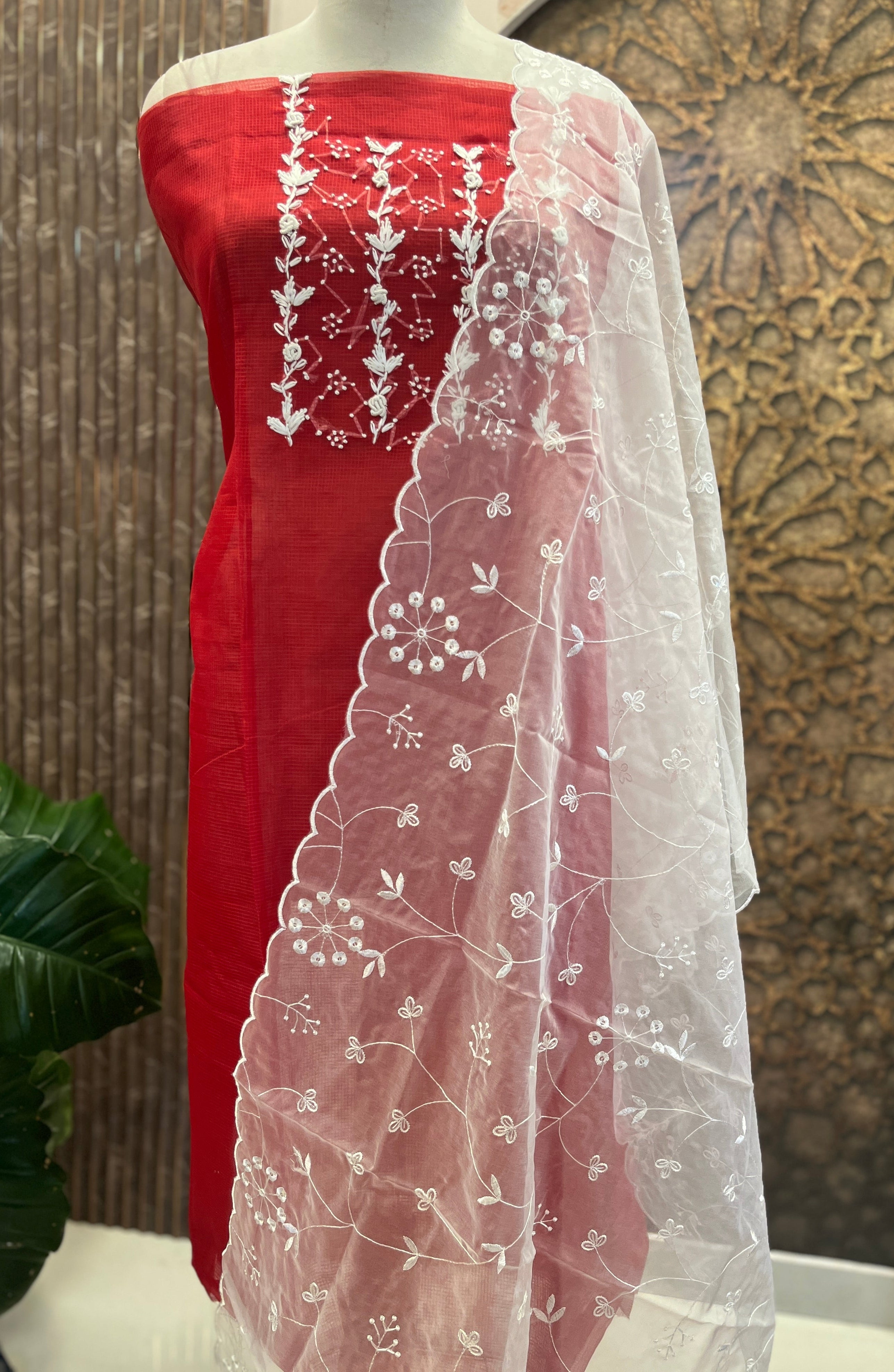 Celebrate this Christmas in style with our elegant Red and white Churidar Set, designed to give you a festive and graceful look. This outfit features a beautifully embroidered red churdar paired with a matching dupatta, making it perfect for holiday