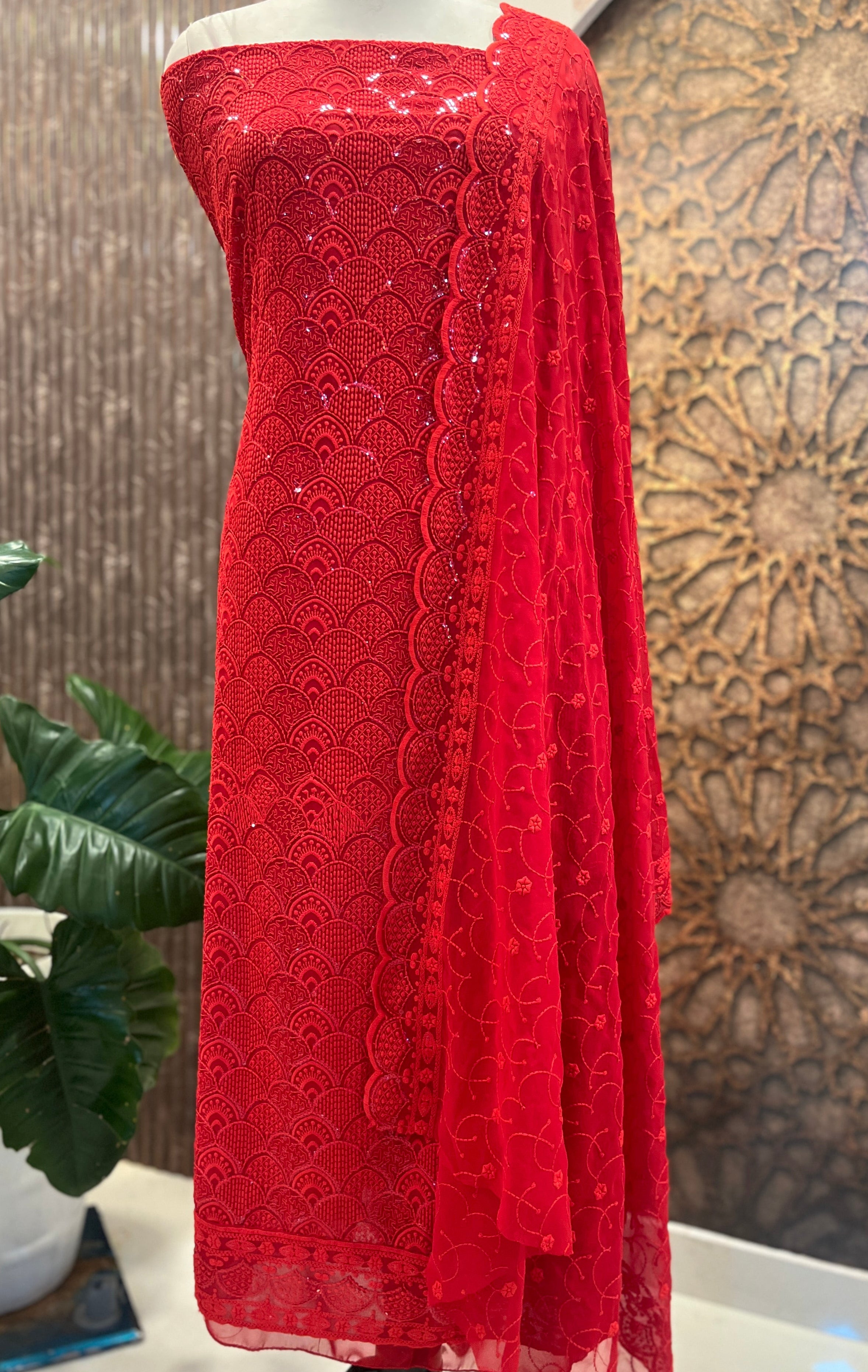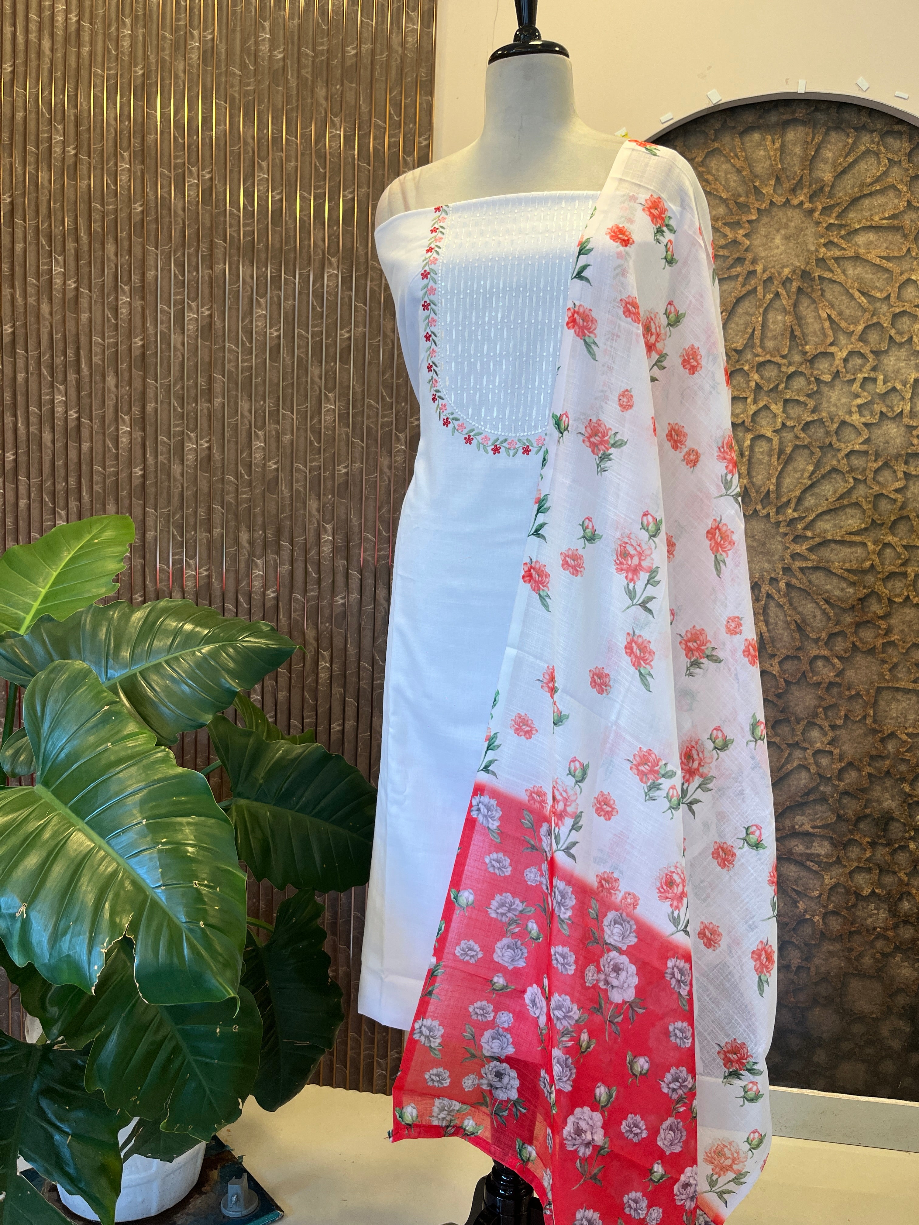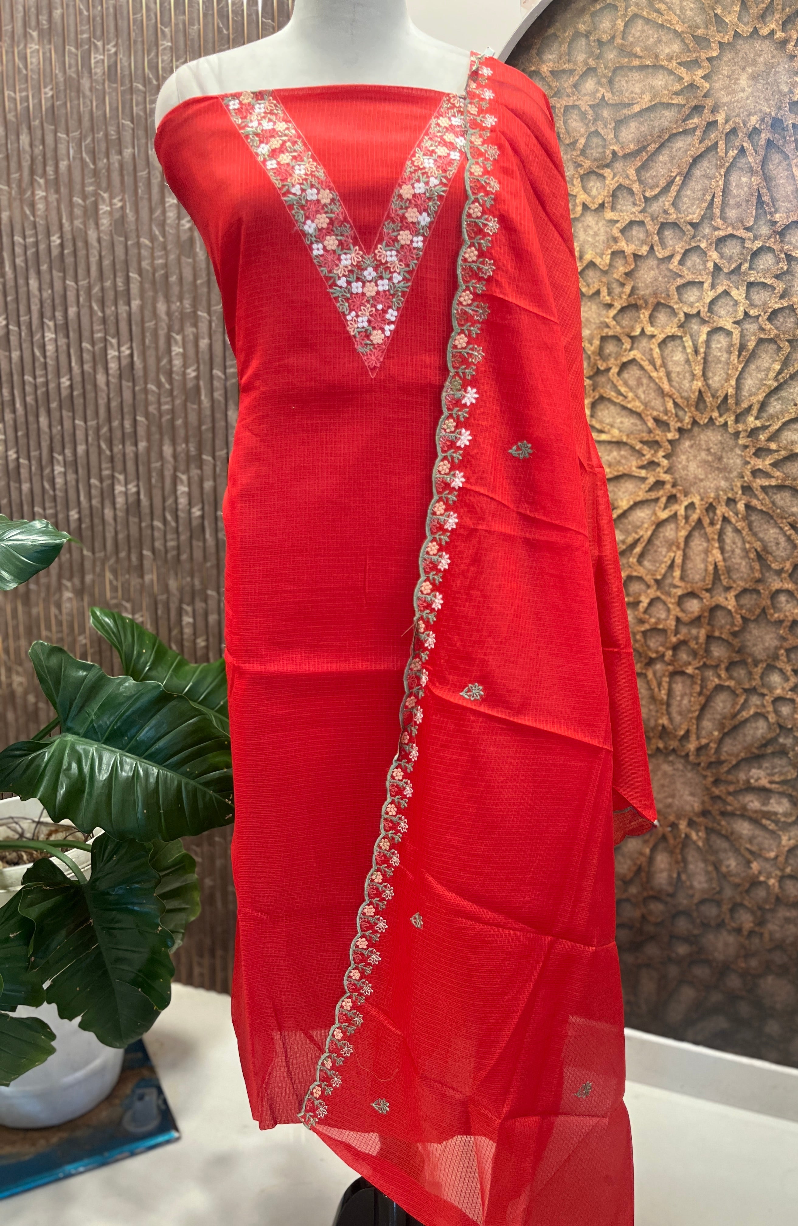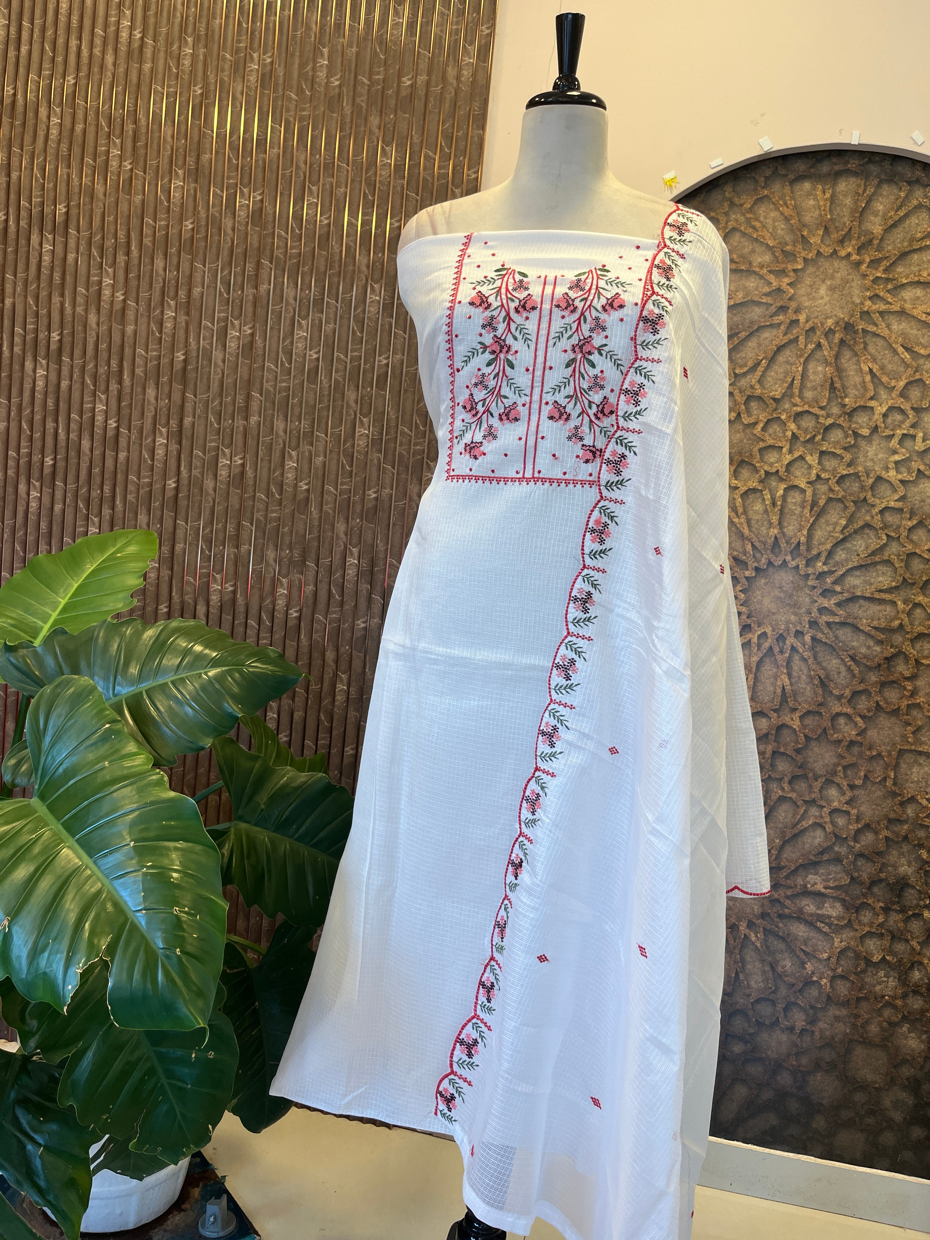Celebrate this Christmas in style with our elegant Red and white Churidar Set, designed to give you a festive and graceful look. This outfit features a beautifully embroidered red churdar paired with a matching dupatta, making it perfect for holiday
