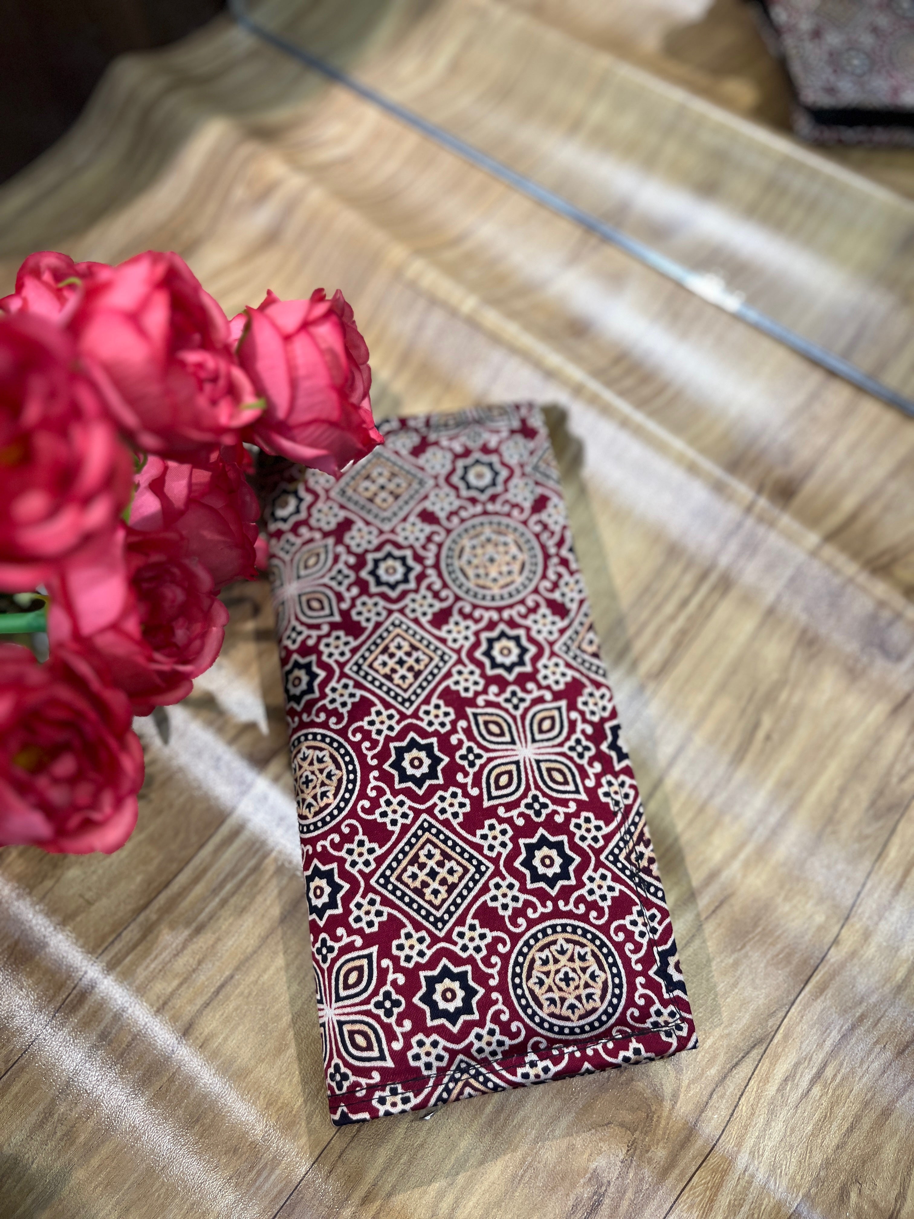 Expertly crafted from luxurious silk, our Ajrakh Model Clutches boast intricate designs inspired by traditional Indian art. With their eye-catching patterns and delicate craftsmanship, these clutches are perfect for elevating any outfit. Plus, the smooth silk material ensures a comfortable and stylish grip. Handmade with precision and care, these clutches are a must-have for any fashion-forward individual.