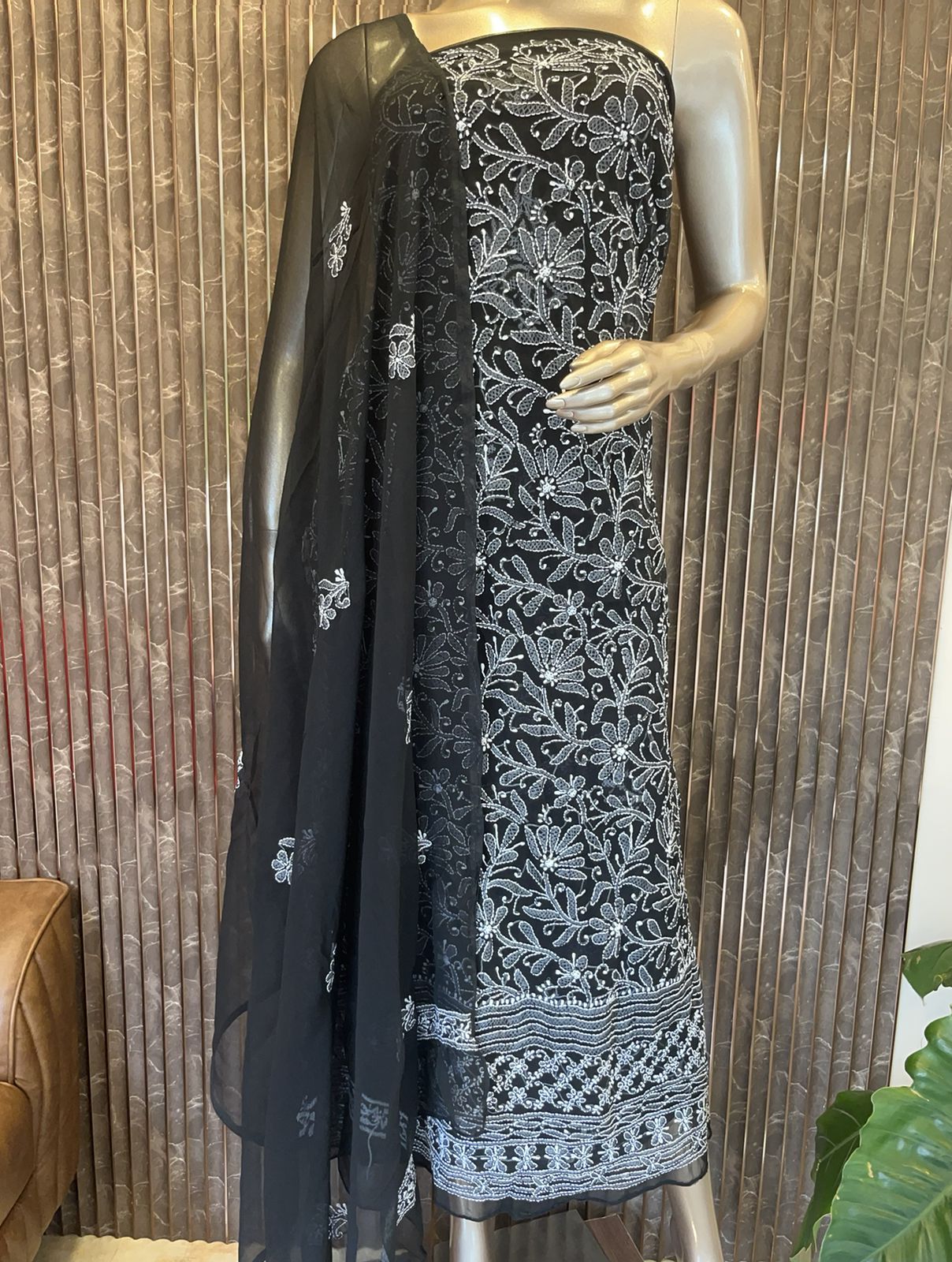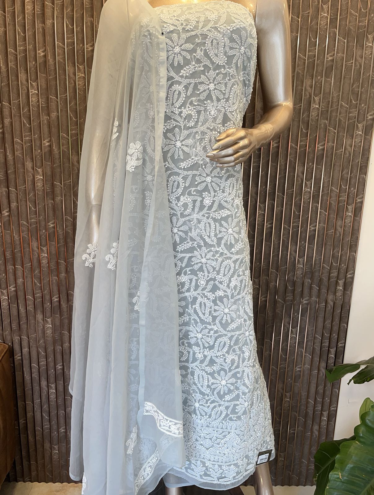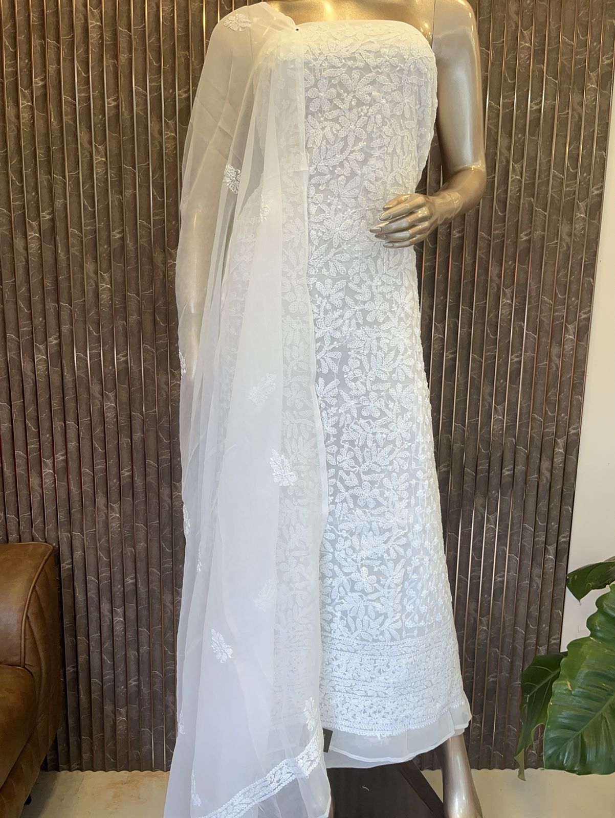Lucknowi Chikenkary salwar materials Dupatta georgette bottom