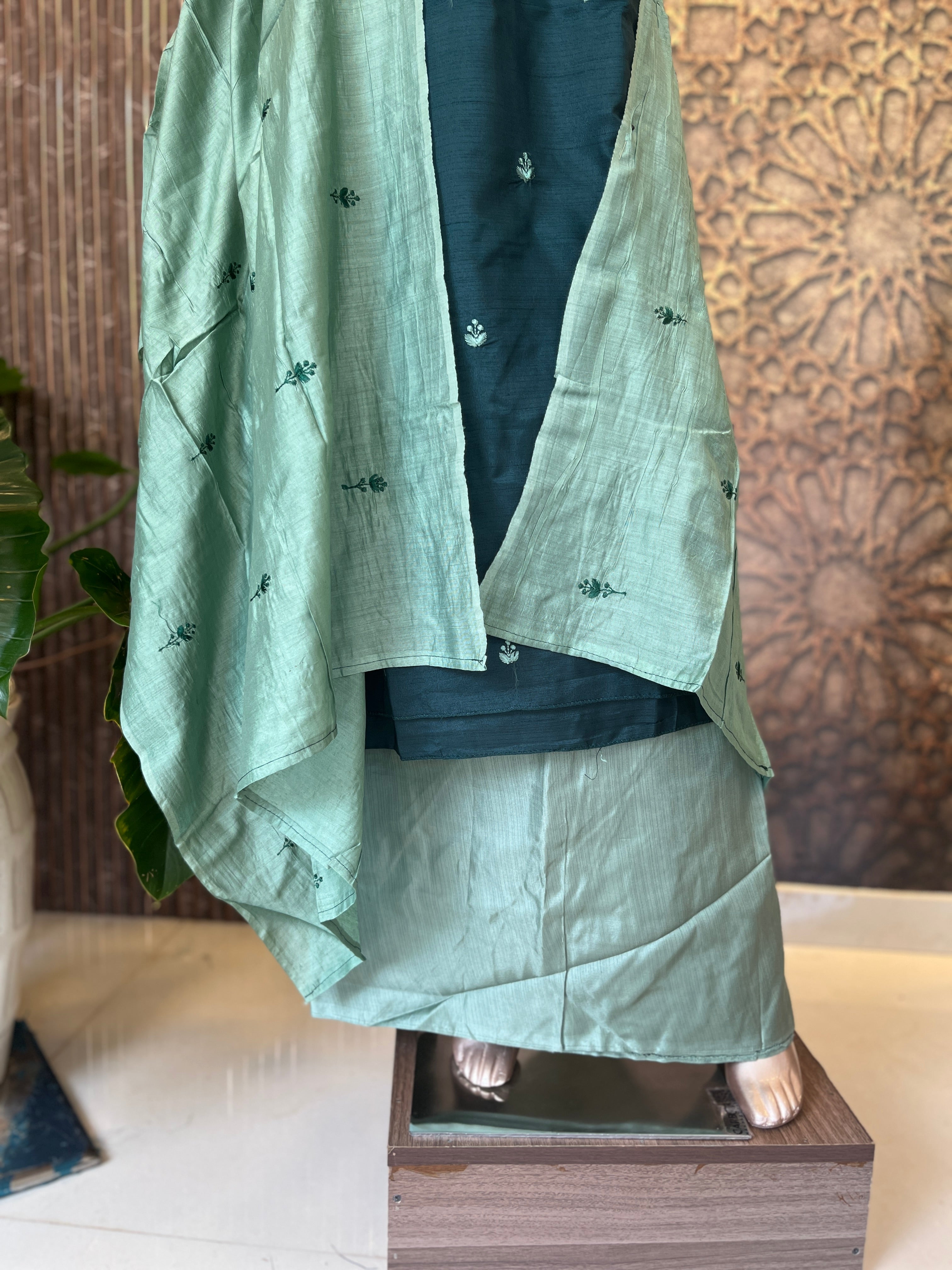 Budget friendly Unstitched semy Silk Salwar Material neck embroidery work bottom plain Dupatta small embroidery work