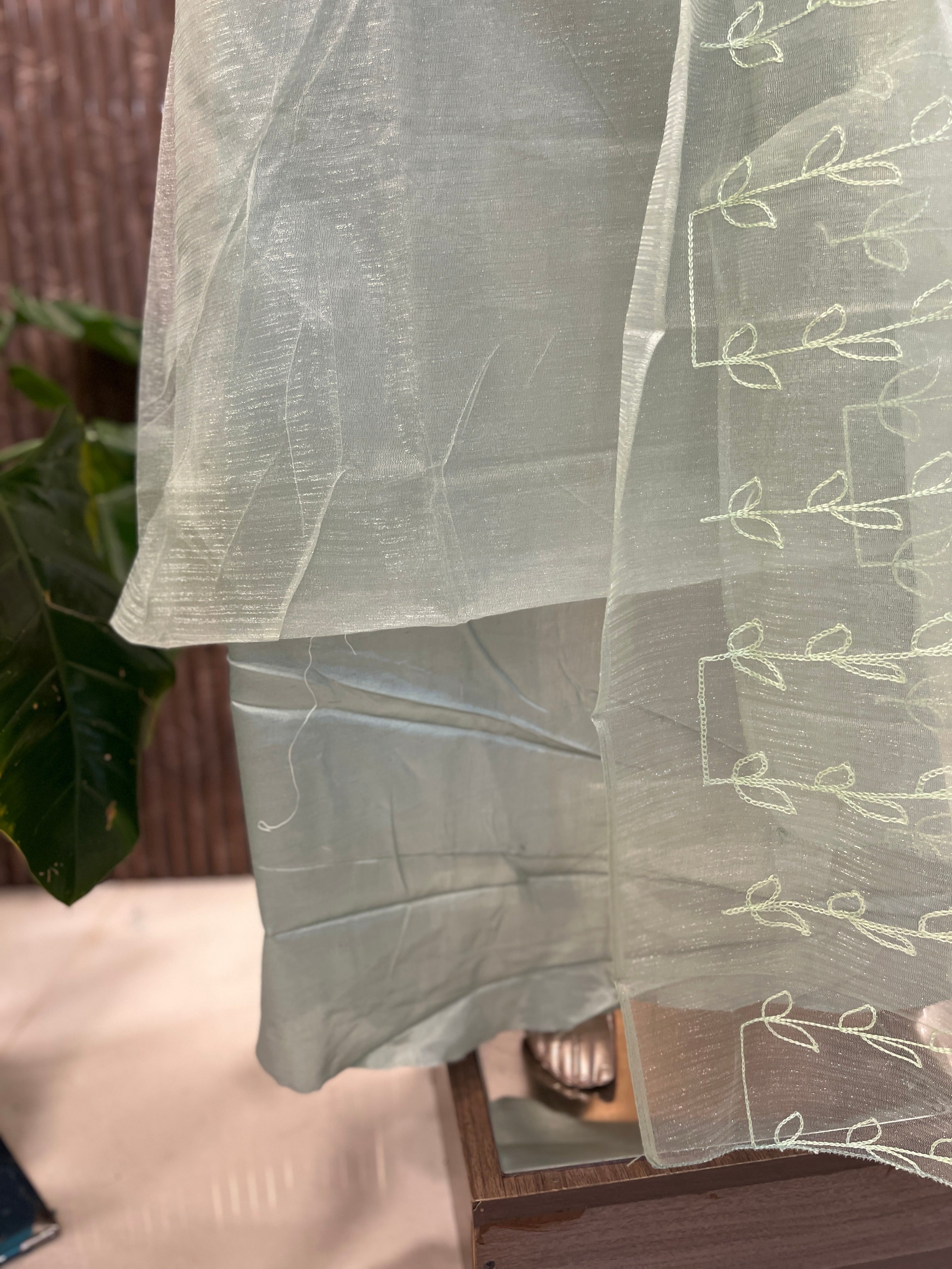 Budget friendly Unstitched tissue net Salwar Material neck embroidery work bottom plain Dupatta lines embroidery work