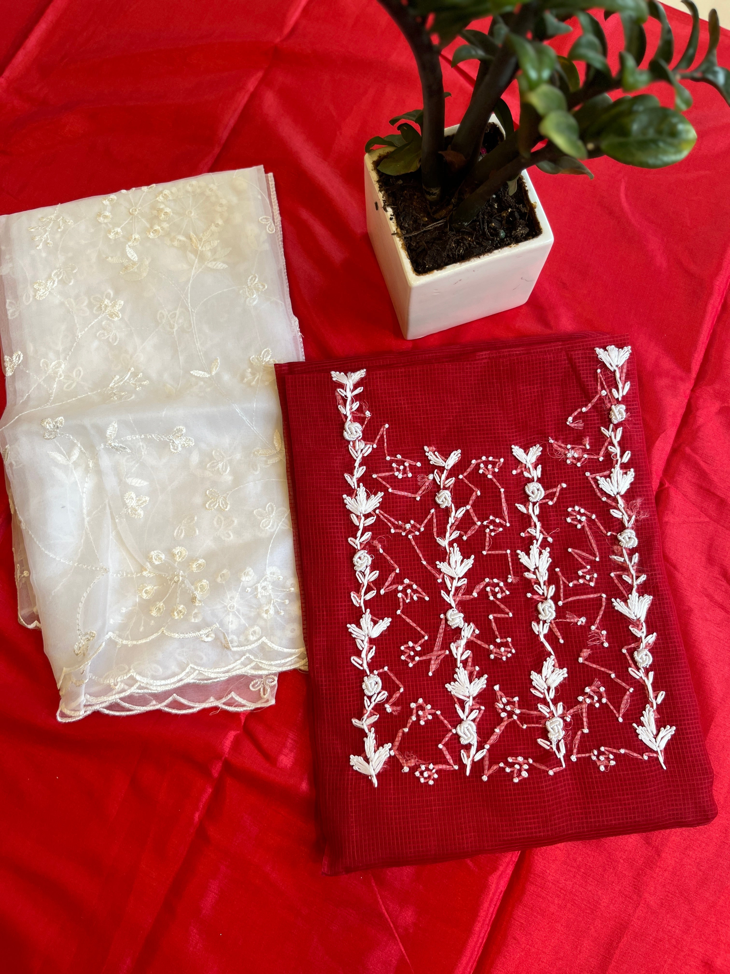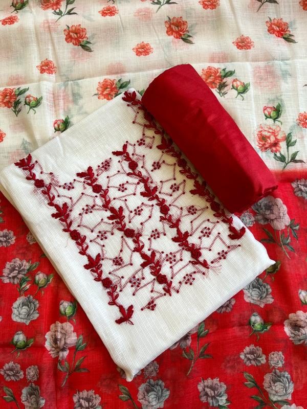 Budget friendly Christmas collection unstitched net cotta Salwar Material .neck embroidery work .bottom plain .Dupatta simple embroidery work