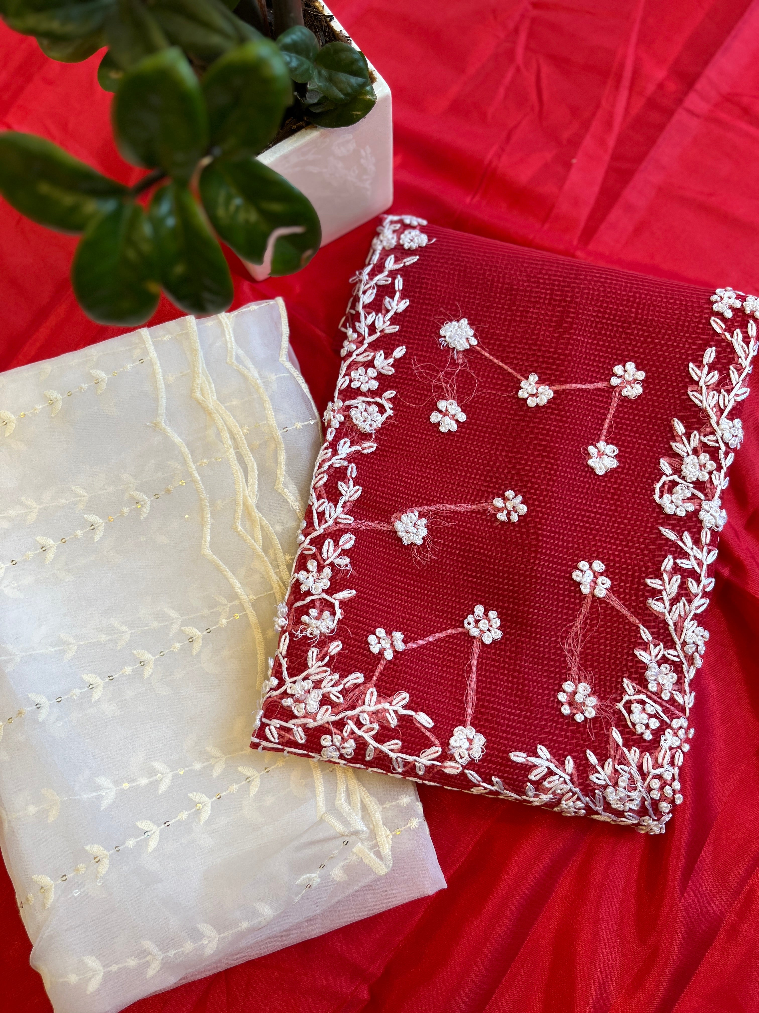 Budget friendly Christmas collection unstitched net cotta Salwar Material .neck embroidery work .bottom plain .Dupatta simple embroidery work