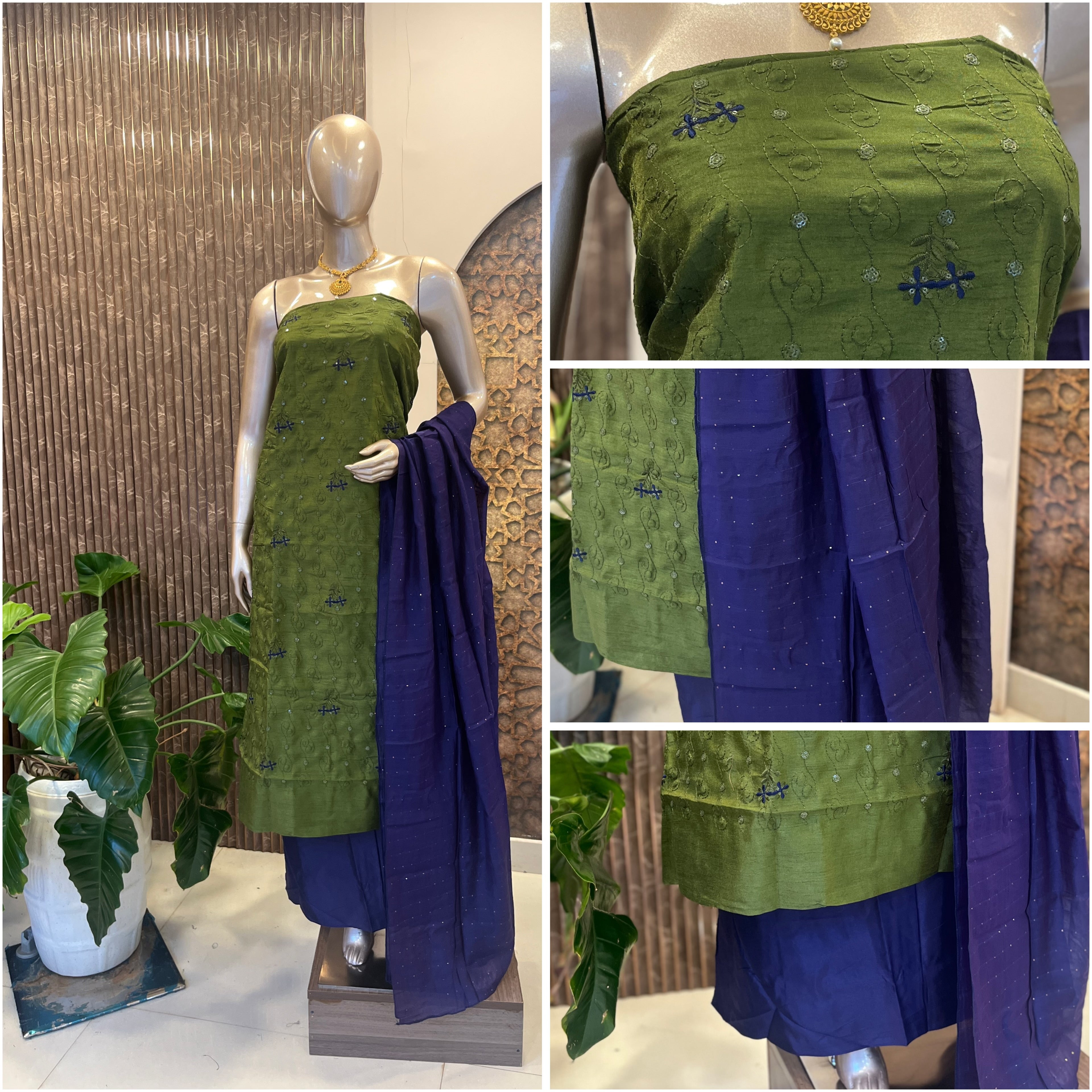 Budget friendly silk cotton Salwar Material top full work bottom plain Dupatta lines
