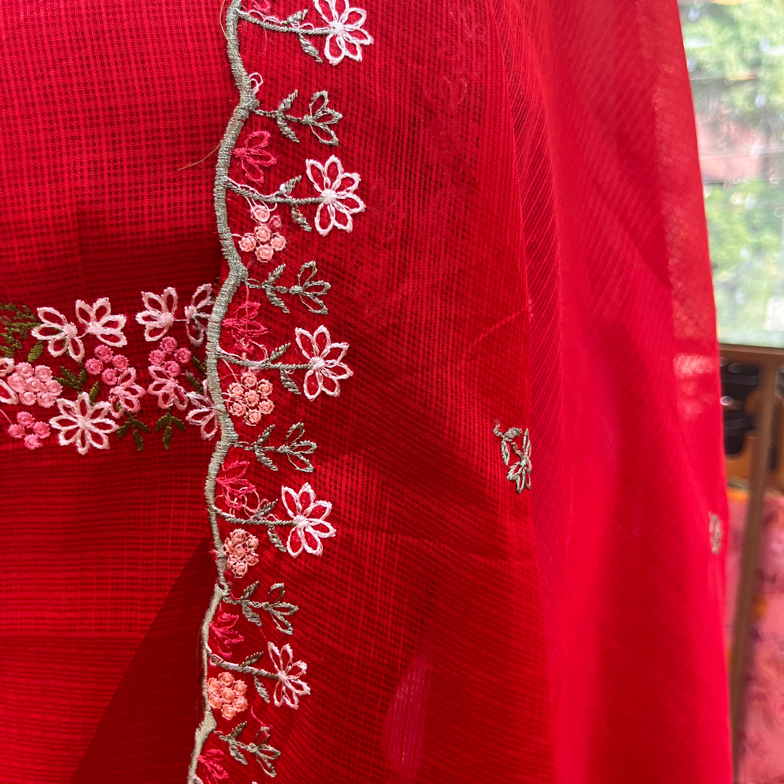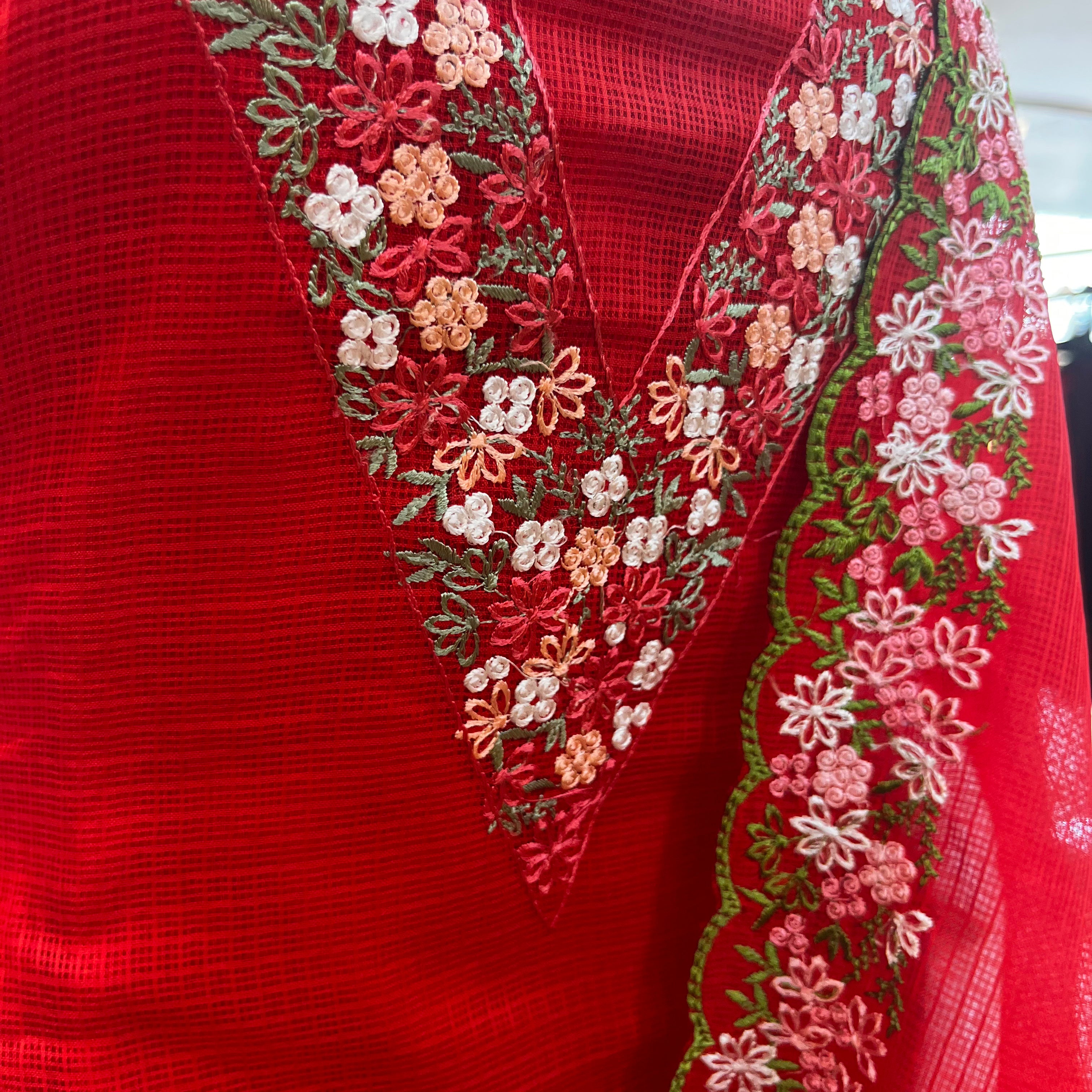 Soft net Cotta Unstitched Salwar suit material with Machine Embroidery
